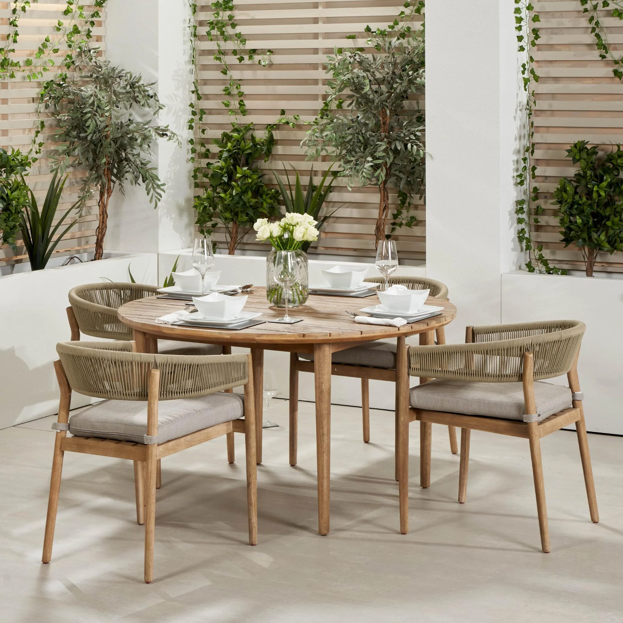 This products, Richmond Garden Furniture Dining Set Round Teak Table And 4 Pieces Chairs is a superb example of quality, style and craftsmanship, guaranteed to look fantastic in any private or public setting. Expertly crafted using grade-A teak for longevity through time and weather. This dining set patio furniture is delivered flat package for your convenience. Low maintenance armchair, can be left untreated if desired. Expertly crafted from sustainable grade-A teak for durability manufacturer from Indonesia. Our Dining set Teak garden furniture made of premium quality plantation grown teak. Wholesale price, factory price, affordable price and more discount. Guaranteed High Class Quality.